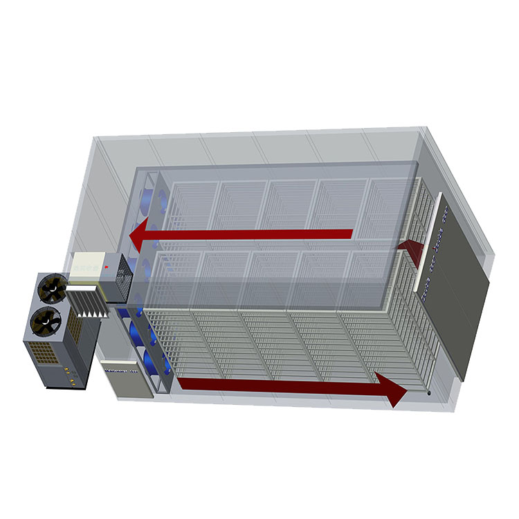 空氣能熱泵干燥機原理熱泵干燥機是利用逆卡諾原理,吸收空氣的熱量并將其轉移到房內,實現烘干房的溫度提高,配合相應的設備實現物料的干燥。熱泵烘干房設備運行費用僅為傳統干燥設備的1/4~1/3,并且可大大減少人力管理成本,干燥工藝節能、高效,干燥產品質量高,非常適合于烘干溫度在75℃以下的物料等。同時,應用熱泵可有